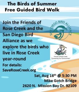 Join us for a collaboration between the San Diego Bird Alliance and the Friends of Rose Creek this month as we enjoy the late sunset.